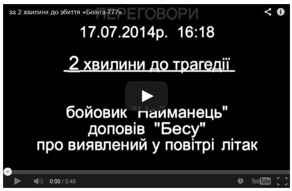 В СБУ отметили, что запись, в частности, доказывает, что террористы из группы подполковника ГРУ генштаба Вооруженных сил РФ Игоря Безлера (Беса) знали о приближении самолета. Подчиненные доложили Бесу о приближении самолета, после чего он дал команду объявить об этом "наверх".