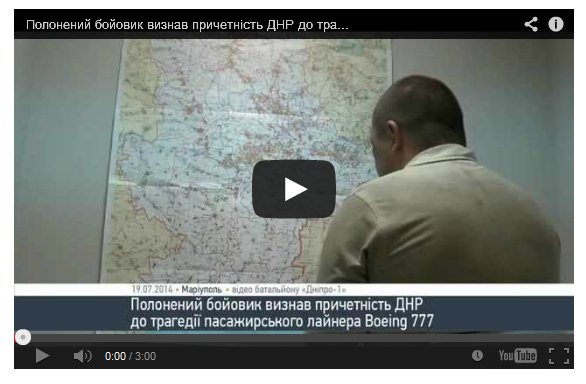 Батальон «Днепр-1» взял в плен боевика, который в ходе допроса подтвердил, что 17 июля пассажирский лайнер был сбит террористами из комплекса «Бук», завезенного из Российской Федерации.