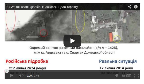 Службой безопасности Украины получены данные космической фотосъемки, подтверждающие факт фабрикации министерством обороны РФ материалов по катастрофе Boeing 777, которые были обнародованы 21 июля 2014 во время брифинга генштаба РФ.