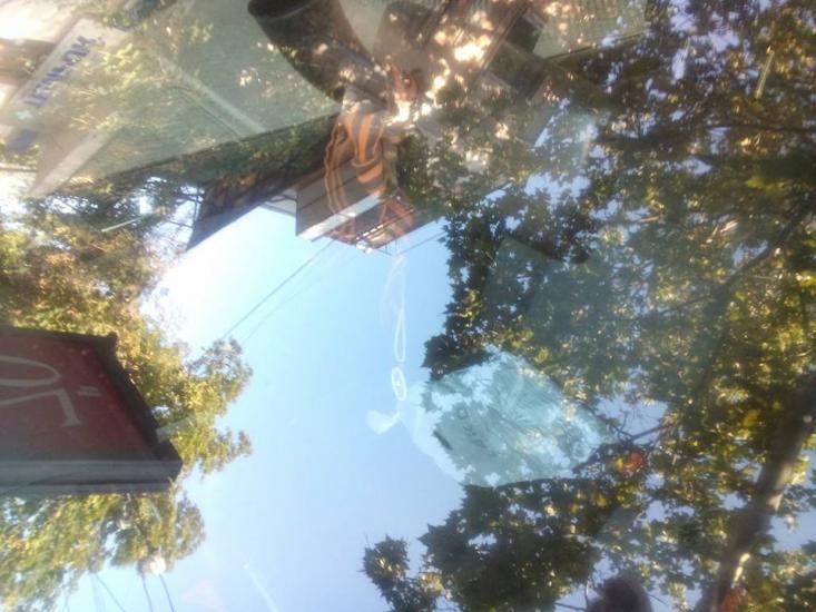 Сегодня проукраинские активисты обратили внимание на иномарку, припаркованную на ул. Бунина/Екатерининская с геогриевской ленточкой.