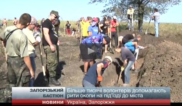 Сотни активистов выехали обустраивать земляные укрпления для обороны города. Об этом на своей странице в социальной сети "Фейсбук" в субботу, 6 сентября 2014 года, сообщает пресс-секретарь председателя Запорожской ОГА Андрей Рыбальченко.