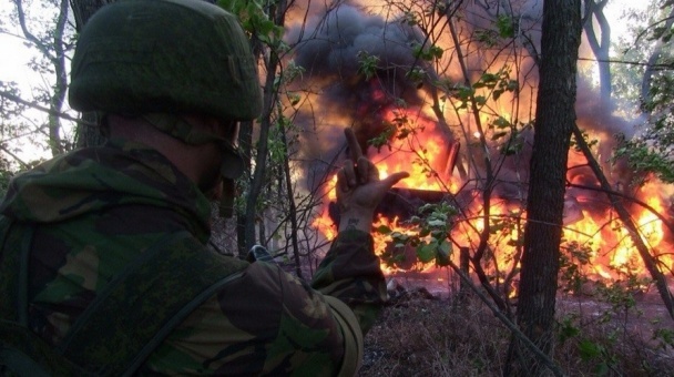 Российские террористы устроили фотосессию на фоне сбитого сегодня в Луганск ...