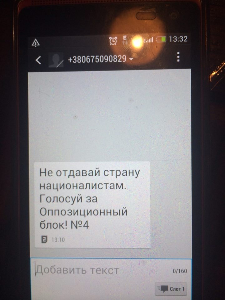 Регионалы агитировали сегодня смсками "не отдавай страну националистам"