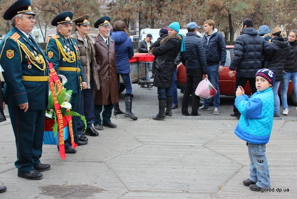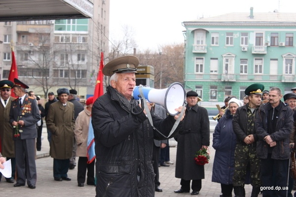 "Я уже 60 лет 7 ноября хожу на митинг. И даже если я останусь один, все равно буду выходить 7 ноября. Я уже с самого утра положил цветы к памятнику Петровскому, а потом приехал сюда, - делится Владимир Гапон. – Я родился в Днепропетровске и жил в нем в оккупацию, и вот такие же фашисты, как и сейчас напротив нас стоят, во время войны чуть не расстреляли мою мать. Нацисты всегда и везде одинаковы, что у нас, что немецкие, что российские…"