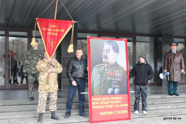 Но все же осуществить задуманное "левым" не удалось. Собравшись возле Оперного театра, они планировали пройти по проспекту до памятника Петровскому (Ленина-то уже нет) и там провести торжественное возложение цветов и митинг. Но дорогу им перекрыли представители правых сил и митингующие остались у Оперного.