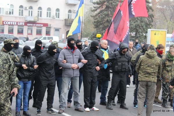 Несмотря на бдительность милиционеров без потасовок все же не обошлось. "Правым" не давал покоя огромный портрет Иосифа Сталина. Несколько раз ребята прорывались к портрету вождя народов, пытаясь его повредить, завязывалась драка, которую растаскивали милиционеры. В итоге коммунисты и соратники свернули свои знамена и оправились по домам. А "правые" отпраздновали свою "маленькую победу" исполнением гимна Украины.