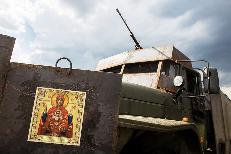 Боевики прикрепляют на них иконы и чучела диких животных, военные наносят патриотические надписи.