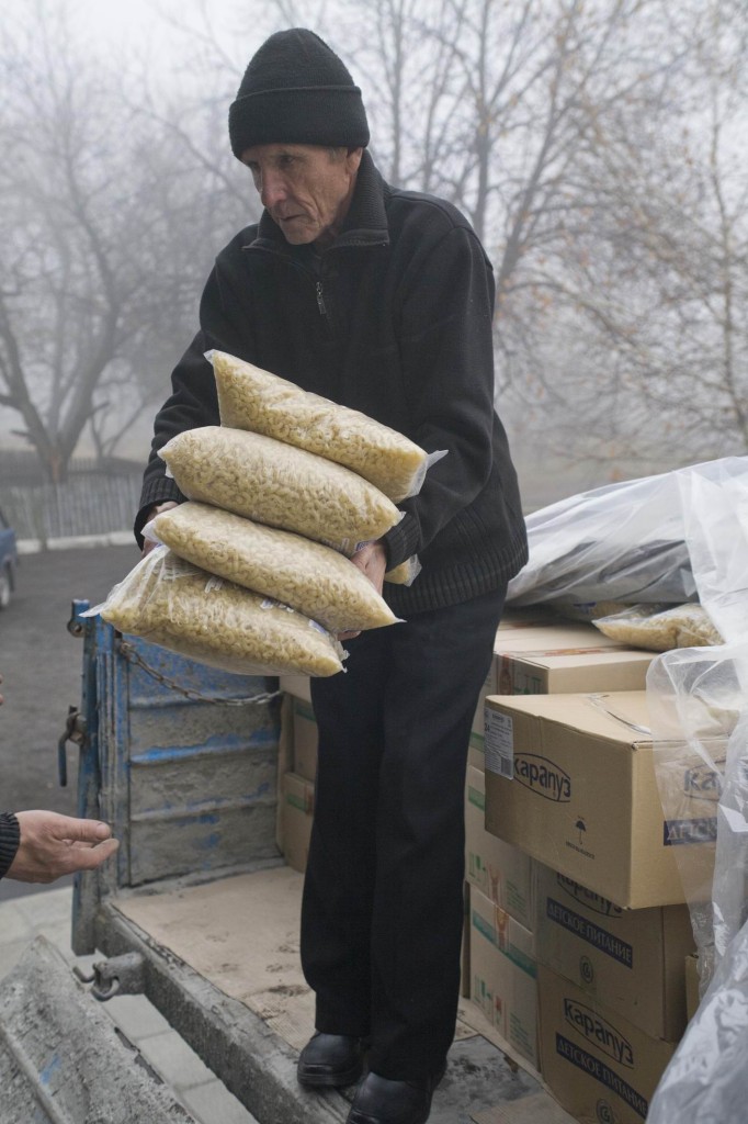 "Мы привезли в Чернухино рыбные консервы, гречку, рис, крупы, макароны, сгущенное молоко, памперсы и пр. А работники "Укрпочты" параллельно доставили сюда пенсию за ноябрь. В течение дня выплаты получили все пенсионеры", - рассказал заместитель председателя Луганской ОГА Владимир Грицышин.