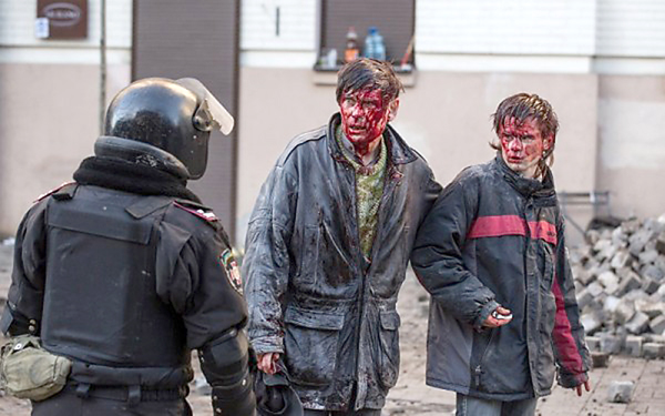 — Я боялся потерять в толпе сына и крепко держал его за руку, — продолжает мужчина. — Мы так и бежали, схватившись за руки, а в это время на нас сыпались удары. Из ран хлестала кровь, но это, похоже, только подзадоривало «беркутовцев». Метров пятьдесят мы преодолели, продержавшись на ногах. Но возле какой-то тумбы нас повалили на землю, били уже не только дубинками, но и ногами.