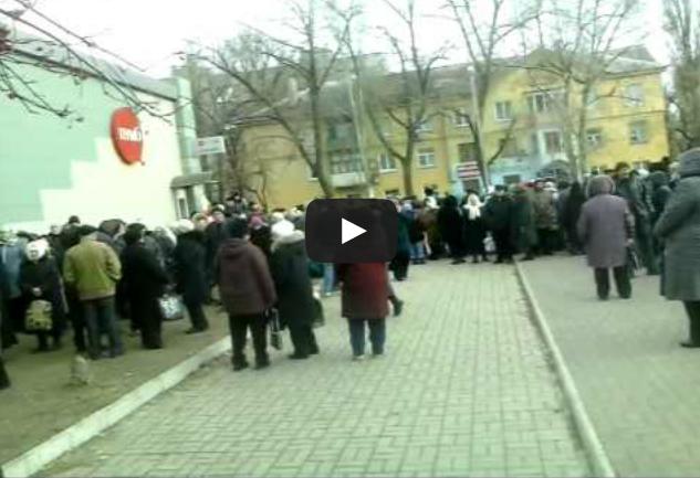 Донецкие жители выстроились в очередь за гуманитарной помощью (Видео)