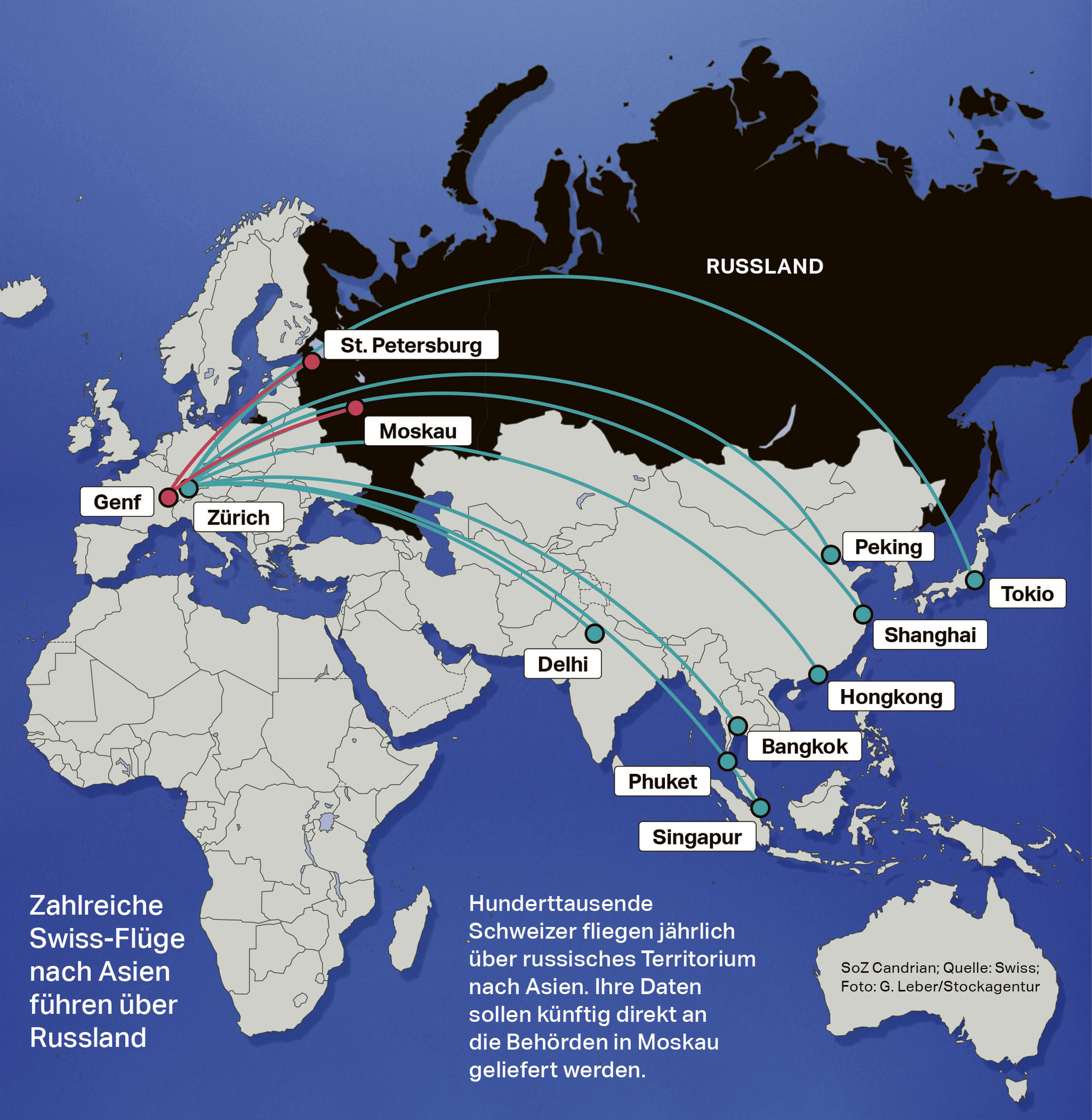 Новые указания будут применяться не только в отношении пассажиров, направляющихся в Россию, но и в отношении тех, кто пролетает над ее территорией. Практически речь идет обо всех рейсах, направляющихся в Азию. Около 200 тысяч швейцарцев ежегодно совершают перелеты в один лишь Таиланд.
