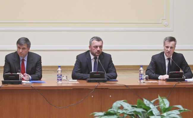 Глава МВД Арсен Аваков, Генпрокурор Олег Махницкий, глава СБУ Валентин Наливайченко. Весна 2014 года