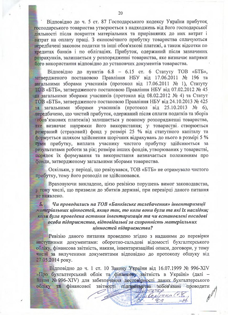 "Поскольку, в периоде который ревизировался, ООО "БТБ" не получало чистой прибыли, поэтому его распределение не осуществлялся. Учитывая изложенное, этой ревизией нарушений требований законодательства, в том числе, что привели ущерб государству, при проверке данного вопроса не обнаружено ", - отметили государственные инспекторы в акте.