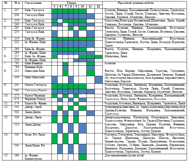 КИЕВ. 5 января. УНН. В период рождественских праздников (с 5 по 15 января) будут курсировать 15