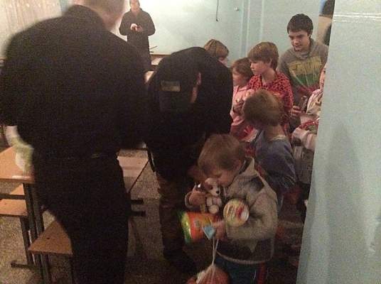 Бойцы «Святого Николая» привезли игрушки и сладости детям, эвакуированным из-под обстрела террористов
