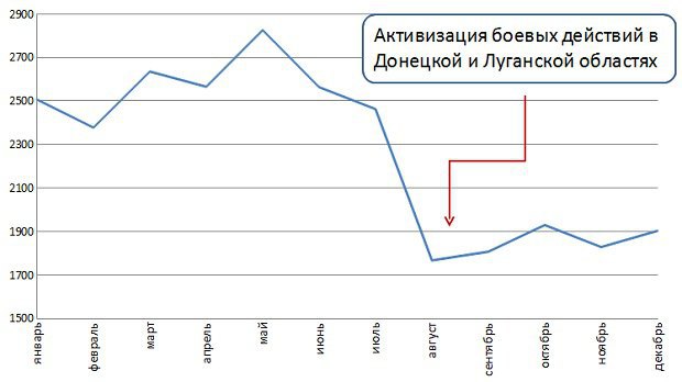 2014 год не обещал сюрпризов, что подтверждали результаты работы в первом полугодии - 15,5 млн т стали. При сохранении таких темпов деятельности, металлурги по итогам года могли выйти на показатель 31-32 млн т (-3-5%). Ведь несмотря на сложную социально-политическую обстановку на востоке страны, появление так называемых Донецкой и Луганской народных республик, большая часть предприятий региона работали, закупали сырье, экспортировали готовую продукцию.