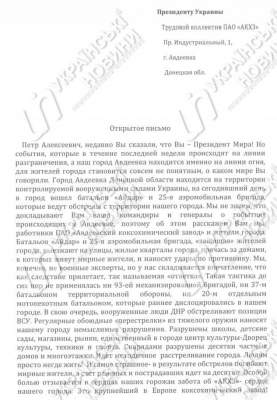 Сотрудники Авдеевского коксохимического завода, принадлежащего олигарху Ринату Ахметову, написали