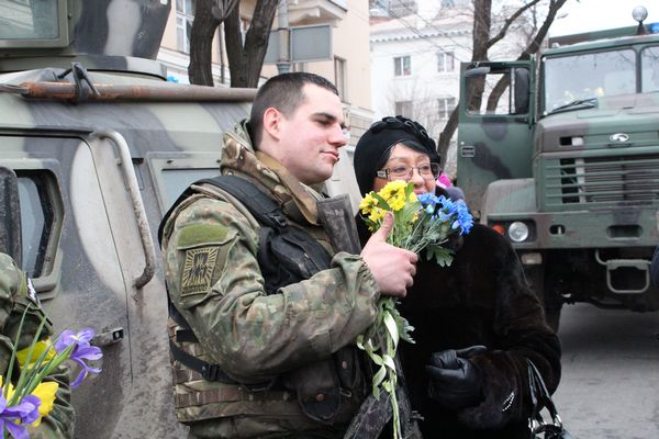 "Скоро мы восстановим территориальную целостность Украины. Нам очень сопротивляются, но очень символично, что Мариуполь, который проявил свою украинскую стойкость, сейчас есть той базой, с которой началось, после полугодового перерыва, наше наступление. Село за селом, город за городом, вся украинская земля очистится от этой сволочи", - сказал он журналистам на митинге, который собрали в соцсетях горожане, чтобы поприветствовать бойцов АТО, возвращающихся с передовой.