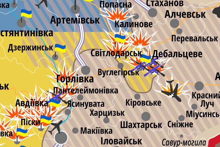 Силы агрессора ведут огонь по позициям украинских сил на востоке, западе и юге города, по поселкам-пригородам Дебальцево. Основное направление - село Чернухино. В штабе АТО отметили, что из оперативных источников стало известно, что боевики планируют захватить Дебальцево со стороны населенных пунктов Горловка и Углегорск.