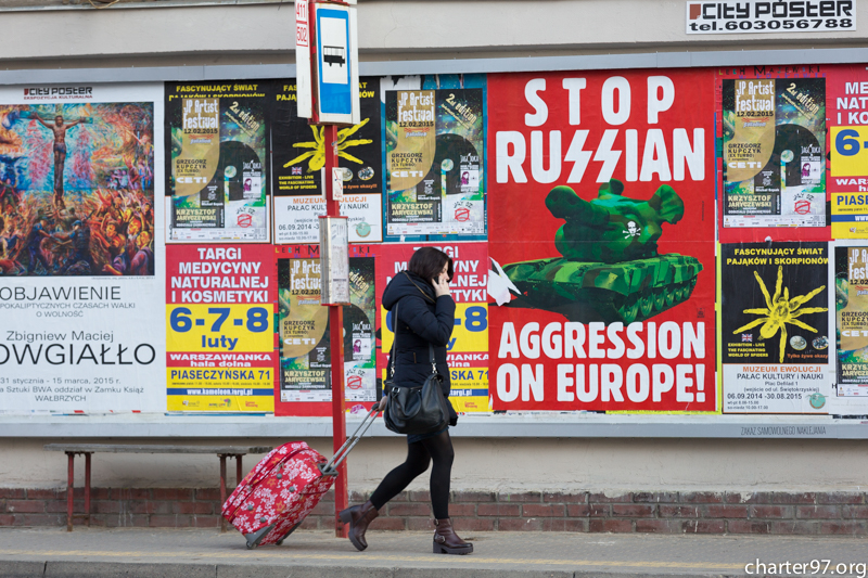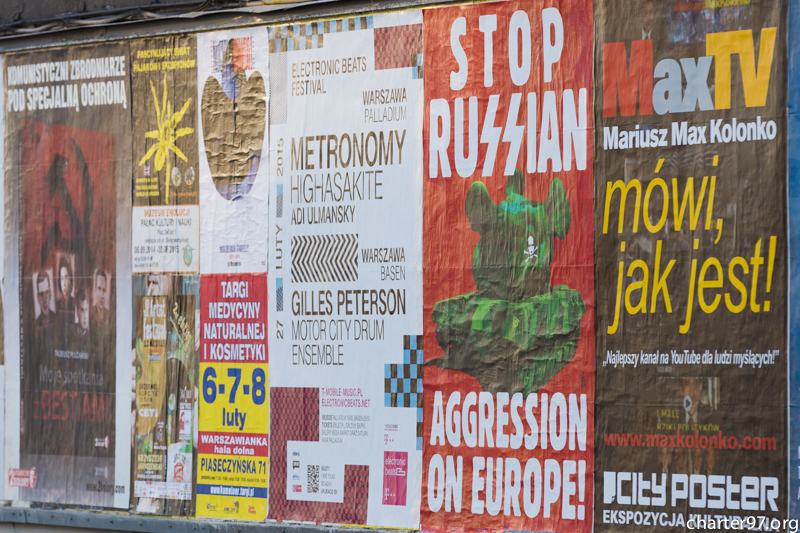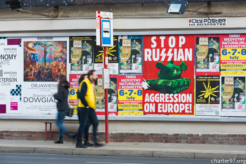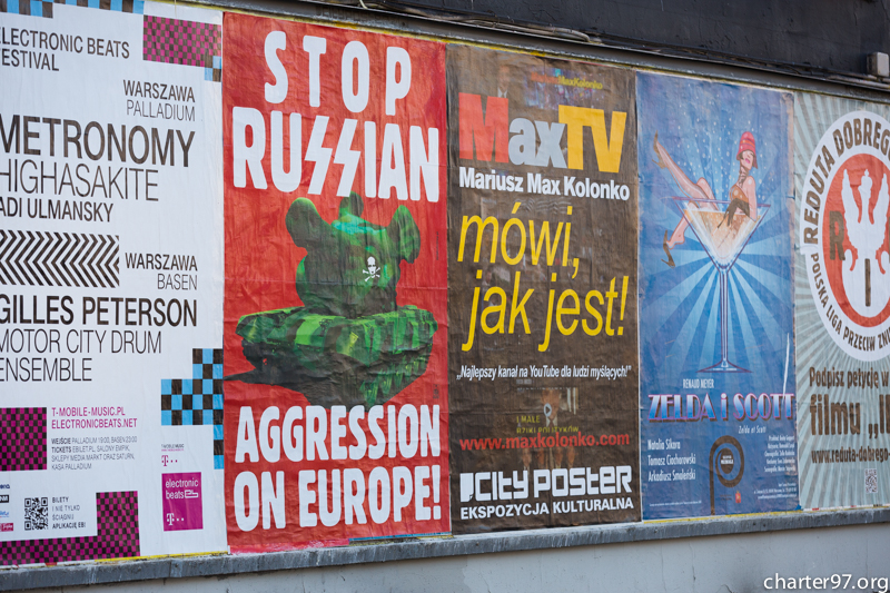 Плакаты «Stop russian aggression on Europe» появились в центре польской столицы, передаёт «Хартыя'97».