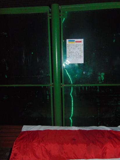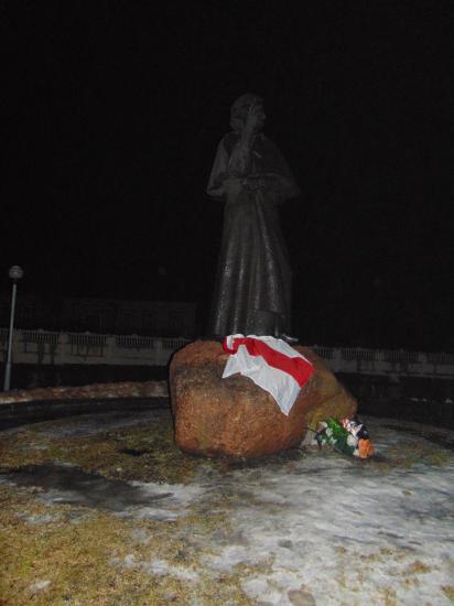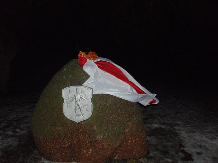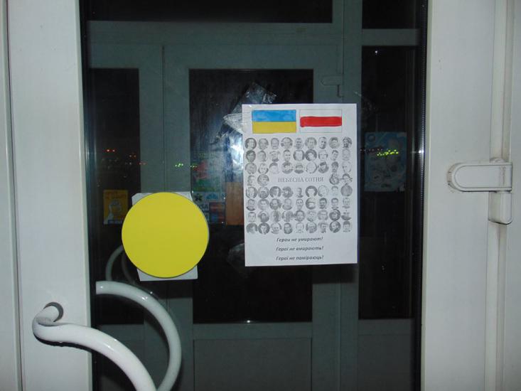 В городе были расклеены листовки с изображением белорусского и украинского флагов, портретов героев Небесной сотни и лозунгом «Герои не умирают».