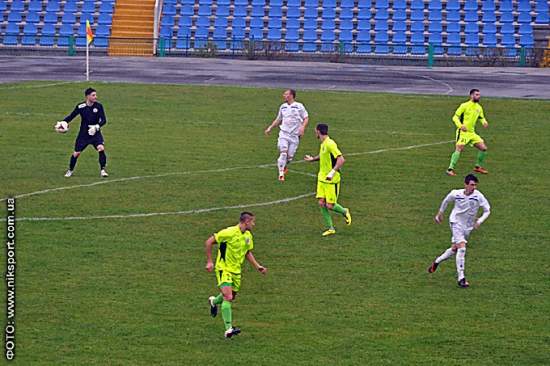В День освобождения Николаева от немецких оккупантов и день рождения своего главного тренера Анатолия Ставки футболисты МФК постарались дать бой одному из фаворитов дивизиона и это у них в какой-то степени вышло. Начало встречи прошло на встречных курсах: первый удар остался за николаевцами, а первым голевым моментом отличился Каленчук, которому не хватило точности (мяч ушел выше ворот). Ему ответил Лещенко, запустивший с острого угла мяч над крестовиной.