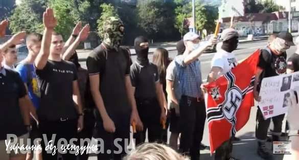 Откровенно неонацистская акция прошла в Киеве возле посольства РФ при полном бездействии «новых» полицейских.