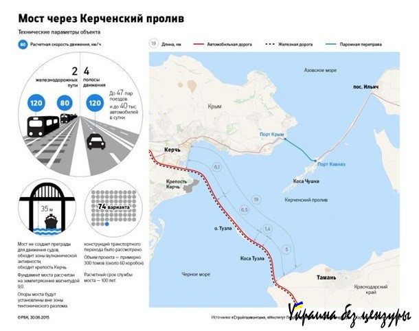 Строительством моста через Керченский пролив занимается компания Стройгазмонтаж Аркадия Ротенберга. Ориентировочная стоимость стройки моста 350 млн долларов. Как известно, Аркадий Ротенберг относится к ближайшему окружению президента РФ Владимира Путина.