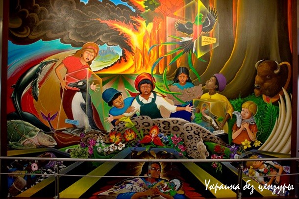 Более развёрнуто о том, что ожидает человечество, по представлениям людей, одержимых синдромом поиска глубинного смысла, вещают картины на стенах залов аэропорта авторства художника-монументалиста также мексиканского происхождения, Лео Тангума. Их общая видимая тема – борьба человечества с различными бедами - геноцидом, фашизмом, экологическим загрязнением, болезнями.