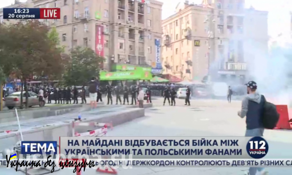 На Майдане Независимости вновь дерутся украинские и польские фанаты. Об этом сообщает украинское телевидение.