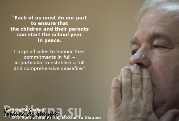 «Специальная мониторинговая миссия ОБСЕ (СММ) в Украине приветствует новый призыв к миру от Трехсторонней контактной группы (ТКГ), который на прошлой неделе в Минске озвучил Специальный представитель действующего главы ОБСЕ, посол Мартин Сайдик», — сказал сегодня Глава СММ, посол Эртурул Апакан.