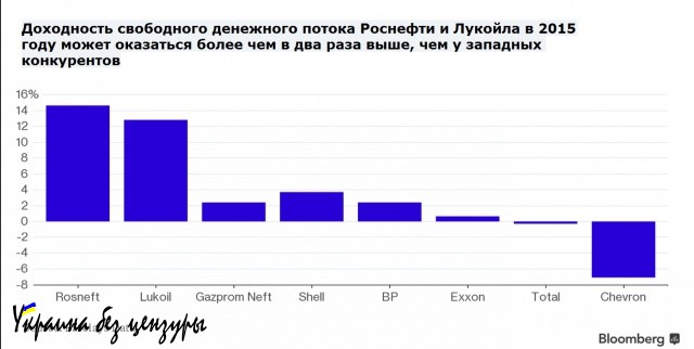 Благодаря налоговой системе и девальвации рубля доходность свободного денежного потока «Роснефти» и «ЛУКойла» в 2015 г. может оказаться более чем в два раза выше, чем у BP и Shell, следует из данных Barclays Plc.