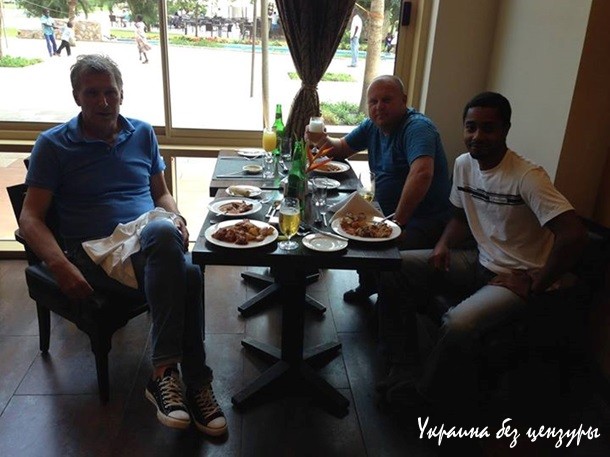 На них он одет в ту же майку, что и в ролике про "москалей" и мирно беседует с героями скандального видео.