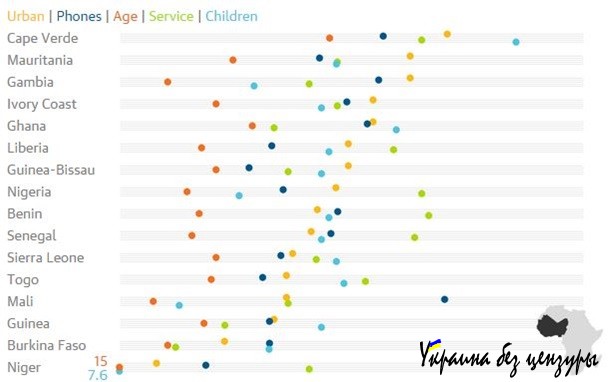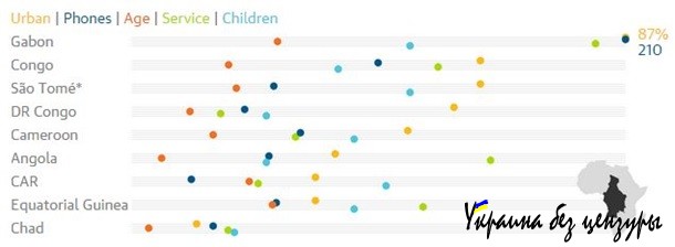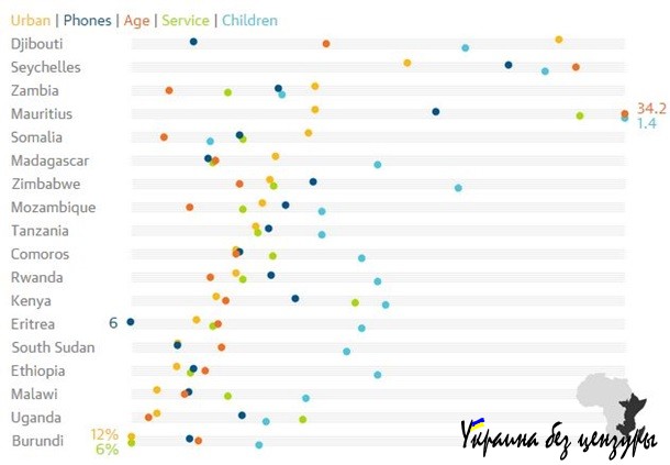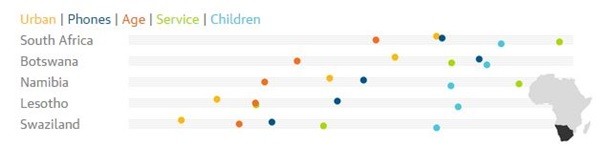 Благодаря ЮАР этот регион в целом выглядит довольно неплохо по всем показателям. Там особенно большое количество мобильных телефонов, а большая часть трудовых ресурсов занята в сфере услуг.