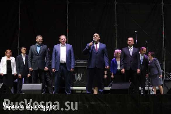 После концерта руководители Республики во главе с главой ЛНР Игорем Плотницким поздравили луганчан с юбилеем города. Плотницкий, в частности, отметил, что «достойная история города началась с тех пор, как в Луганске была отлита первая пушка и первое ядро».