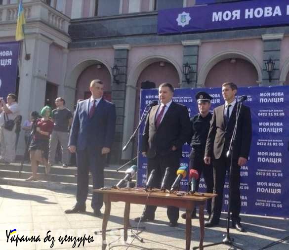 Очевидцы сообщают, что Аваков на выкрики не реагировал, пожелав удачи претендентам на должности новых украинских полицейских
