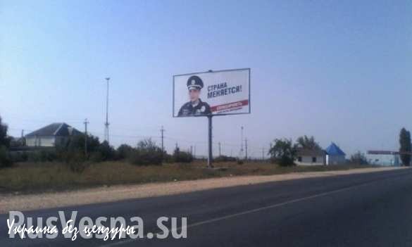 Как известно, ранее в сети появились фотографии предвыборных билбордов «Блока Петра Порошенко «Солидарность» с лозунгом «Страна меняется» и изображением представительницы новой полиции.