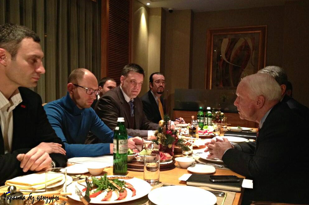 Что касается непосредственных контактов лидеров экстремистов с американскими кураторами, то здесь никакой тайны не было изначально. Так, возглавившие «протесты» в Киеве Яценюк, Кличко, Тягнибок и Турчинов регулярно наведывались за инструкциями в американское посольство, а позже главари «территориальных батальонов» неоднократно летали в США, надо полагать с той же целью. Кроме того, в самом начале Майдана в одном из офисов партии «Батькивщина» были обнаружены и изъяты около 17 миллионов долларов наличными, предназначавшиеся, как нетрудно догадаться, для оплаты «активистов».