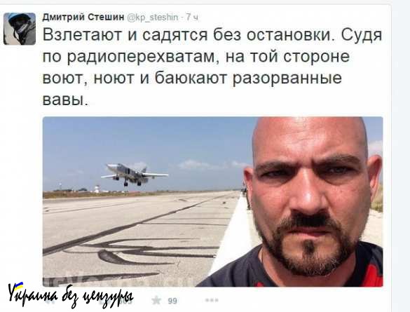 Российская авиация наращивает удары по боевикам-исламистам в Сирии, сообщает в своем Twitter спецкор «Комсомольской правды» Дмитрий Стешин.