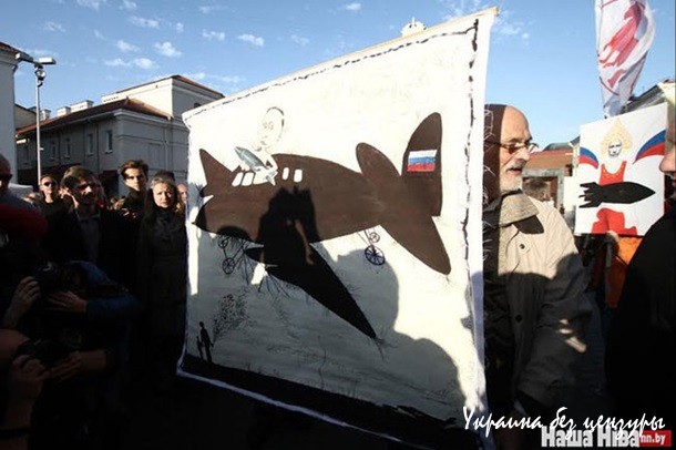 К акции приходили милиционеры, однако они покинули площадь, а участники митинга скандировали "позор". Также был лозунг "Беларусь - не Крым". Численность акции не уточняется.