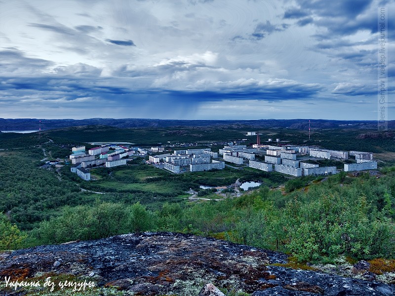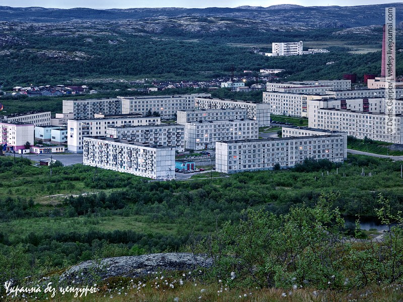 Это — тот самый поселок Видяево. Фото сделано другим блогером, Денисом Гариповым, в далеком 2009 году. Собственно, это весь поселок, всего три улицы, пара десятков жилых домов и несколько административных зданий.