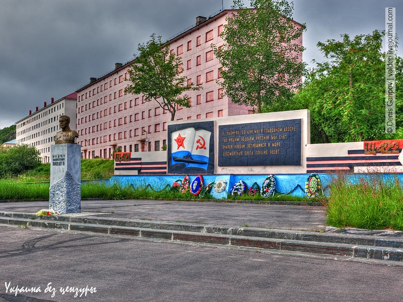 Идем дальше. Центр поселка, памятник советскому подводнику Федору Алексеевичу Видяеву, погибшему в 1943 году. В его честь поселок получил свое название: