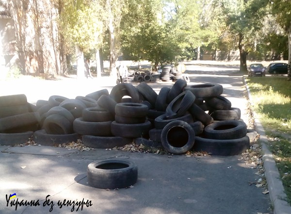 Те самые покрышки, собранные в апреле прошлого года, заставляют водителей подъезжающих к телецентру, сбросить скорость. Это своего рода дополнительная мера безопасности, не более того.