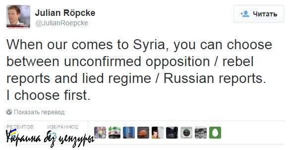 Как самокритично признаётся сам Джулиан Рёпски , если «приходится выбирать между неподтверждёнными сообщениями оппозиции/повстанцев и лживыми сообщениями режима/русских, я выбираю первое».