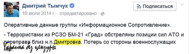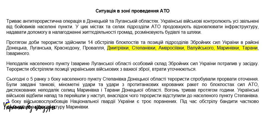 17 июля (то есть в день авиакатастрофы «Боинга») СНБО перечисляет те же пункты сосредоточения украинских войск за исключением Степановки: Тараны, Дмитровка, Мариновка.