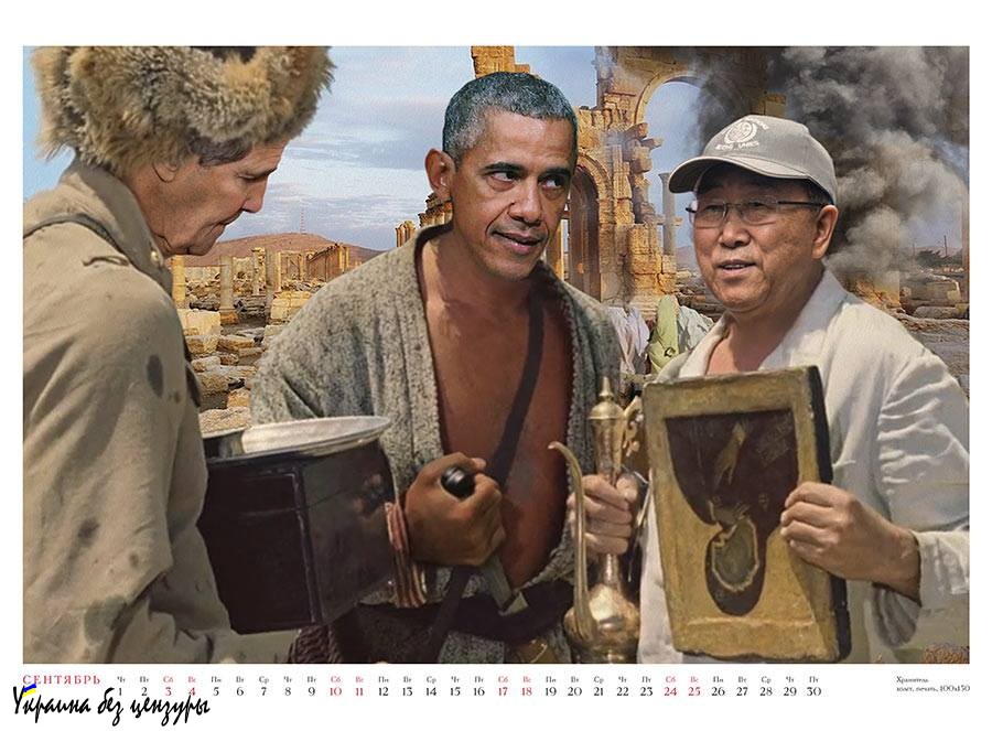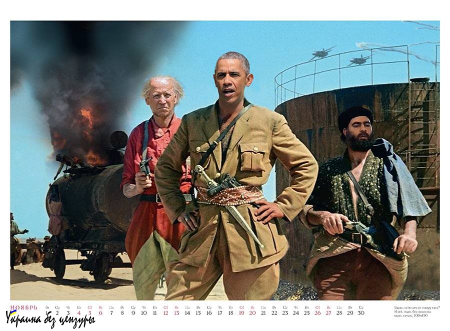 В Сети появился календарь Белое солнце пустыни — 2016. Главные герои: Владими Путин, Башар Асад, Барак Обама, Сергей Шойгу, Джон Керри, Сергей Лавров и другие.