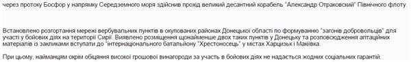 «Установлено развертывание сети вербовочных пунктов в оккупированных районах Донецкой области по формированию «отрядов добровольцев» для участия в боевых действиях на территории Сирии.