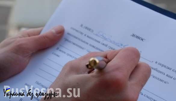 1. Итак. Начиная писать донос соберитесь всей своей патриотической ненавистью. Вспомните, сколько зла москали причинили Неньке Украине за последние 30 веков! Обильному слюноотделению хорошо содействуют воспоминания о победоносной битве при Конотопе, убийстве невинного няшки-Петлюры и мужественной физиологии депутата Ляшко. В крайне случае, можно вспомнить нелюбимую тещу… Всё — необходимый для творчества запас яда выделился и можно приступать к работе. Слюну глотать категорически запрещено, если вы не хотите умереть от бешенства прямо сейчас.