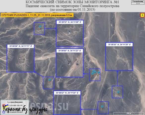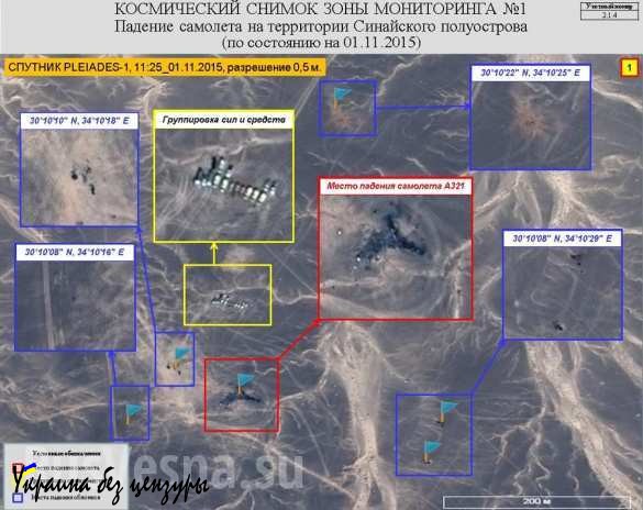 Спасатели, работающие на месте крушения А321 на Синае, получили детальный космический снимок зоны авиакатастрофы.