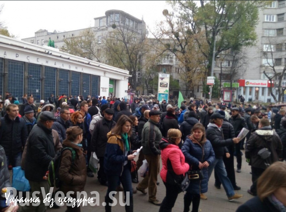 У метро «Арсенальная» в Киеве уже собираются люди, которые планируют митинговать под Верховной Радой.